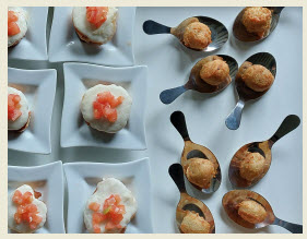 Bruchetta à la tomate / Beignets au roquefort et gingembre