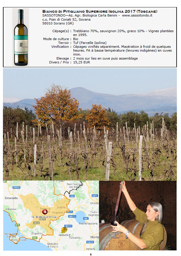 La robe frappe par son côté doré intense rappelant un liquoreux alors que le vin est parfaitement sec. Bouquet mûr, légèrement résiné, sur les fruits jaunes (abricot surtout) et le couple cire / encaustique avec un soupçon de miel et de bois (alors que le vin ne le voit jamais durant le processus d’élaboration…). La bouche est riche et mûre, puissante et longue avec une rétro frisant l’orange amère. Les amers, on les retrouve en fin de bouche associés à un poil de gaz, ce qui donne une touche rustique inattendue à l’ensemble qui en ressort un peu durci. Finalement, cela gâche le ressenti sur un vin qui ne manque pas de fond.