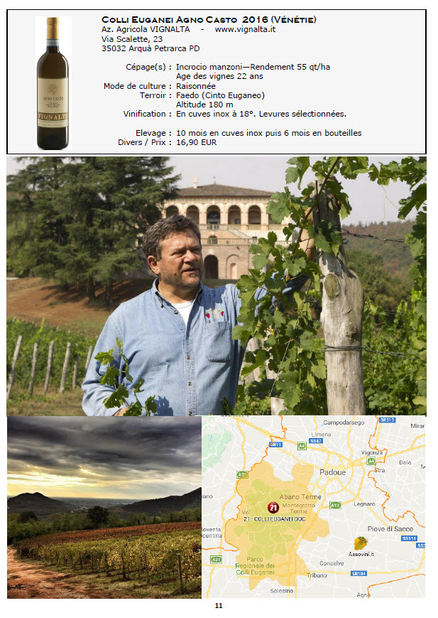 Nez vigoureux et pimpant, très fruité (pomme jaune et pêche) avec des arômes de pierre chauffée au soleil. La bouche confirme ; c’est rond, lisse, gras, ample et fruité avec une belle fraîcheur qui se renforce dans une fin de bouche très minérale. Grâce à cela, le vin ne s’étale jamais malgré un alcool qui se marque par intermittence. Belle persistance. La complexité n’est pas le point fort de ce vin qui s’impose comme un vin de soif de belle tenue et d’une accessibilité confondante pour un amateur de vins en largeur. C’est pour moi la surprise de la soirée car je ne me souviens pas avoir jamais dégusté un incrocio manzoni de ce niveau.