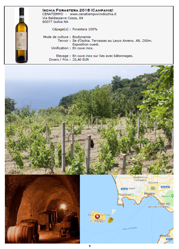 Bouquet ouvert sur les fruits jaunes mûrs, l’ananas, le miel et les fleurs avec une pointe d’épices douces et une impression de cailloux chauffés au soleil. La bouche est franche, ronde, très concentrée avec un retour sec et une nervosité sous-jacente qui titille la langue. Belle persistance marquées par de beaux amers. Globalement c’est moins élégant que le Frassitelli mais le vin vaut par sa présence en bouche.